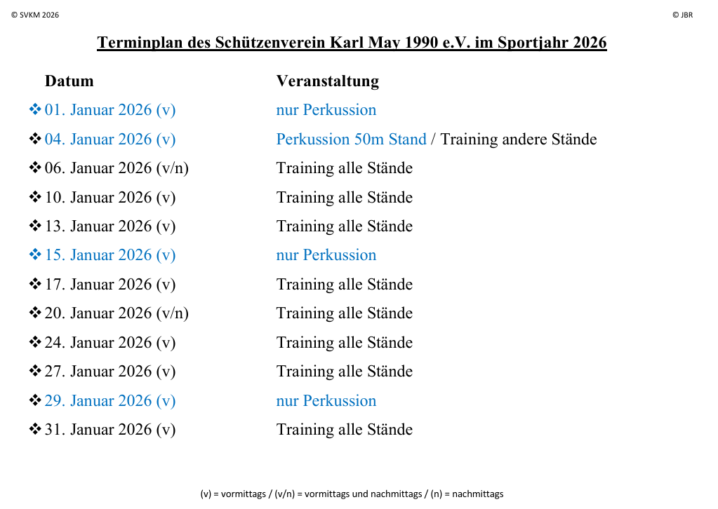 Termine und Veranstaltungen im Monat Januar 2026