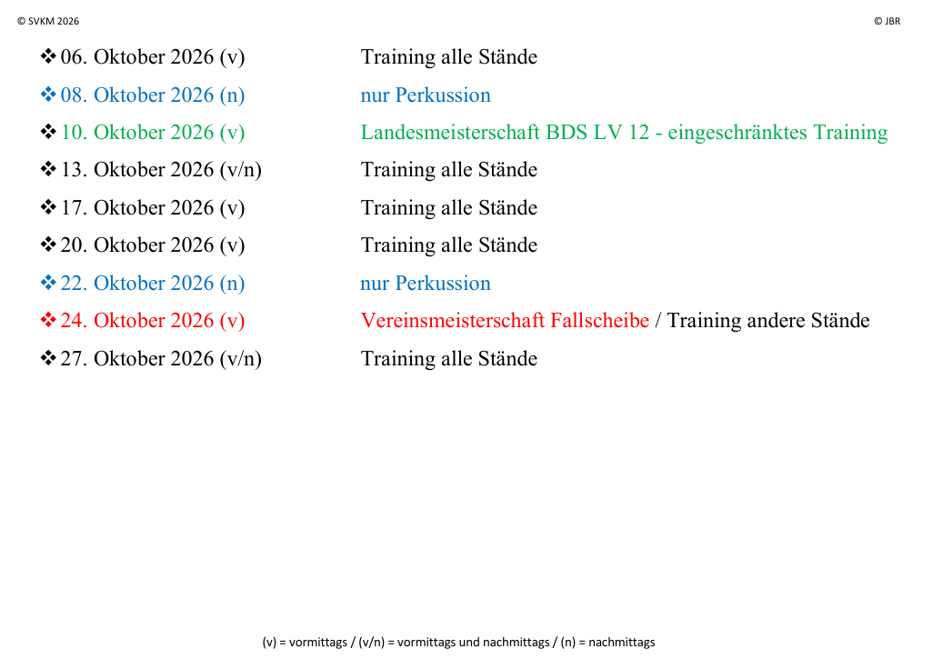 Termine und Veranstaltungen im Monat Oktober 2026